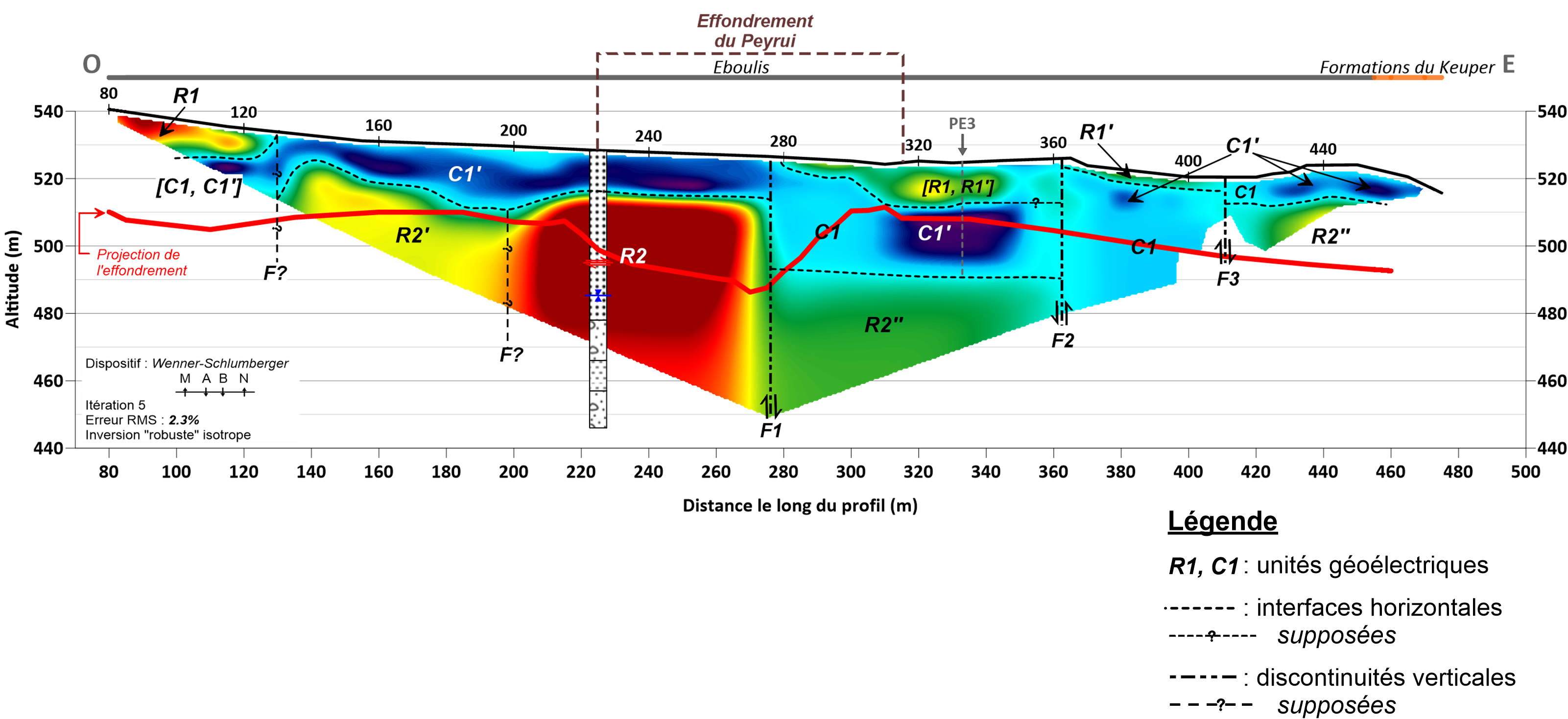Le BRGM a proposé en 2022 une étude (BRGM/RP-71427-FR) qui a permis d’aborder la problématique sous un angle pluridisciplinaire en analysant d’une part la susceptibilité aux effondrements-affaissements liés à la dissolution de gypse par une analyse détaillée des contextes géologiques et hydrogéologiques au regard de la spécificité du phénomène à aborder, et d’autre part la collecte, l'analyse et la structuration des mouvements de terrain et des dommages associés. Au cœur du village, un travail plus poussé a permis de définir la géométrie des formations présentes en profondeur à partir de synthèses existantes et de nouvelles acquisitions spécifiques géophysiques au sol et géologiques par sondage, et de mener une analyse détaillée de la typologie des désordres constatés intégrant en particulier la vulnérabilité des ouvrages en précisant localement l’influence des eaux de ruissellement et d'infiltration au voisinage des désordres constatés. Une carte de sensibilité hiérarchisée a été proposée sur la commune, associée à des recommandations de gestion du risque adaptées pour mieux gérer et appréhender le risque complexe de dissolution du gypse : informer sur le risque et ses conséquences, améliorer la connaissance, prévenir les désordres, agir sur les facteurs aggravants les phénomènes de dissolution et surveiller les zones sensibles identifiées.
