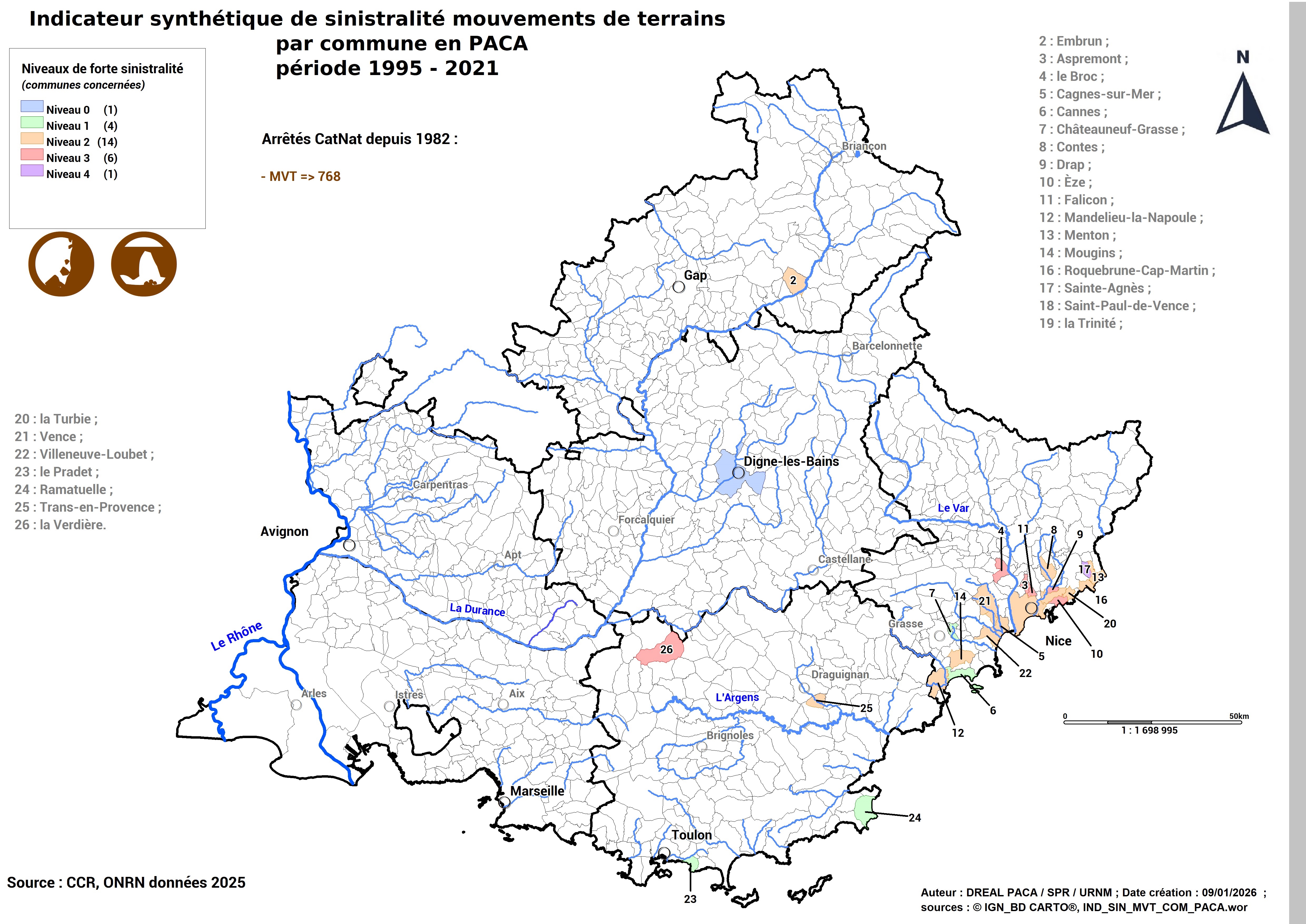 Communes dites à forte sinistralité mouvements de terrain (ONRN, données 2025)