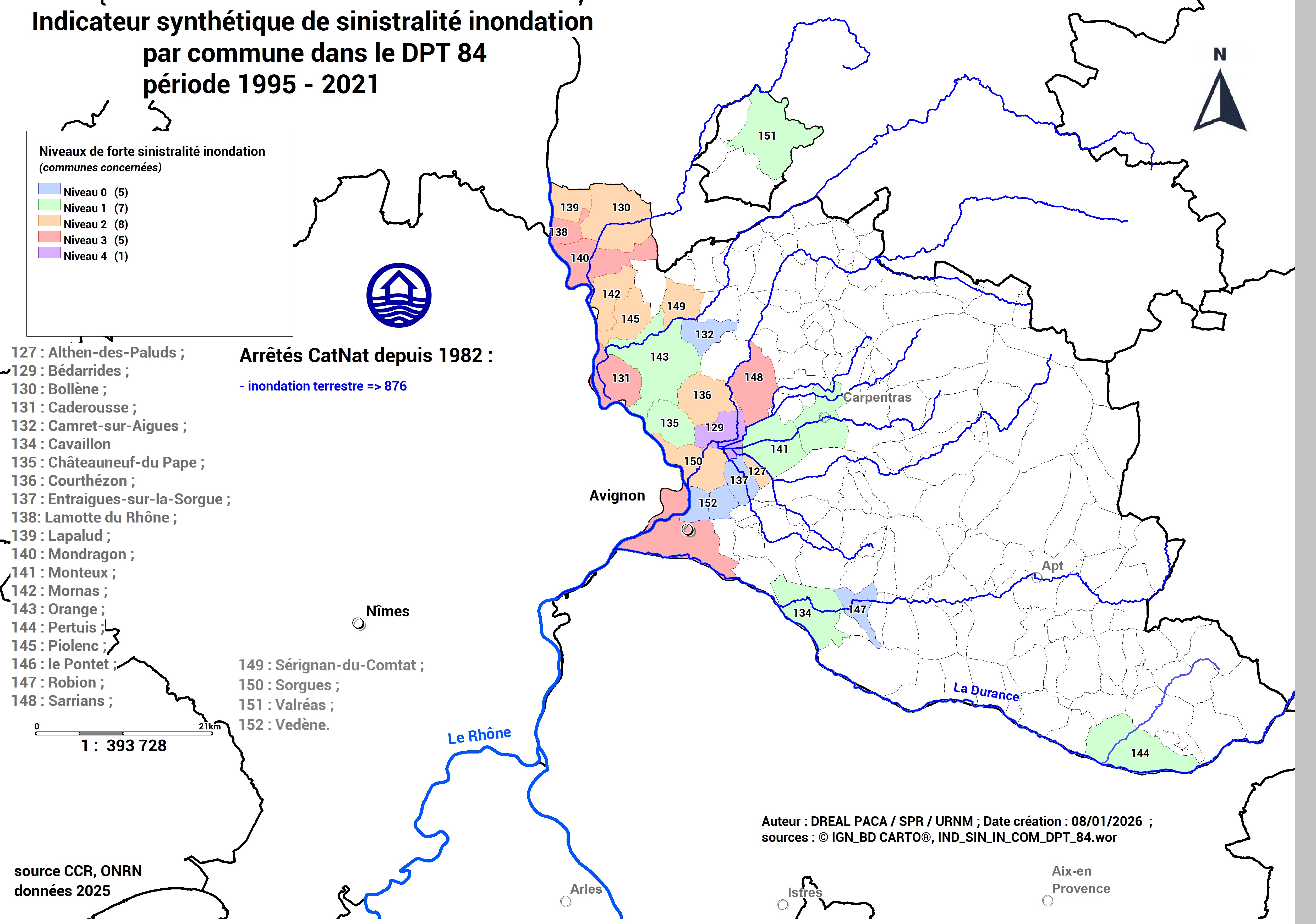 Carte département 84 des communes à forte sinistralité inondation (ONRN, données 2025)