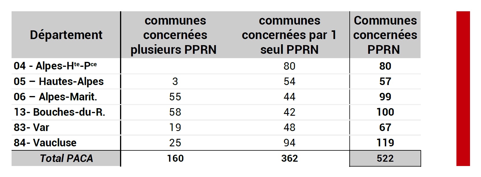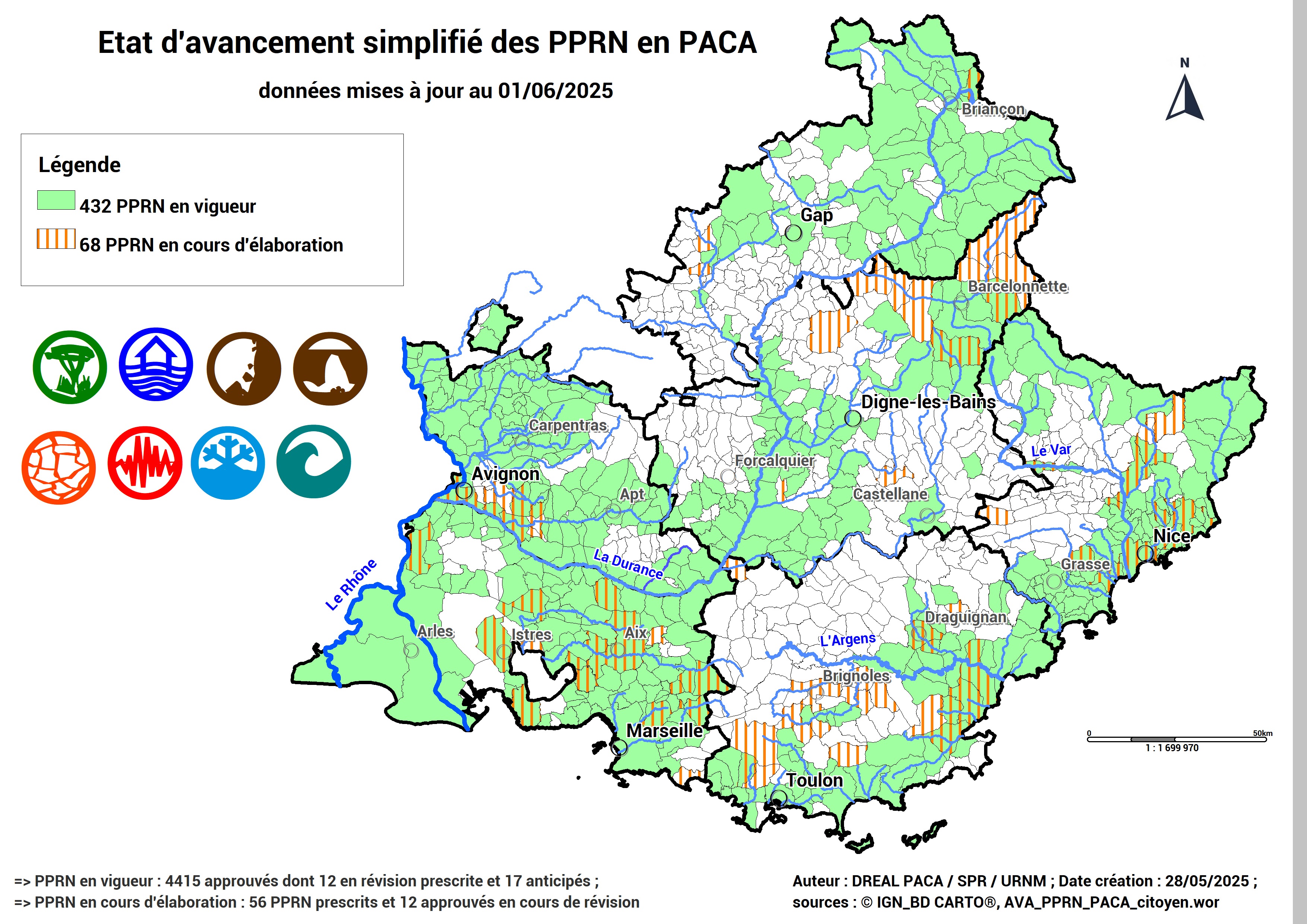 Etat d'avancement simplifié des PPRN en PACA (cartographie)