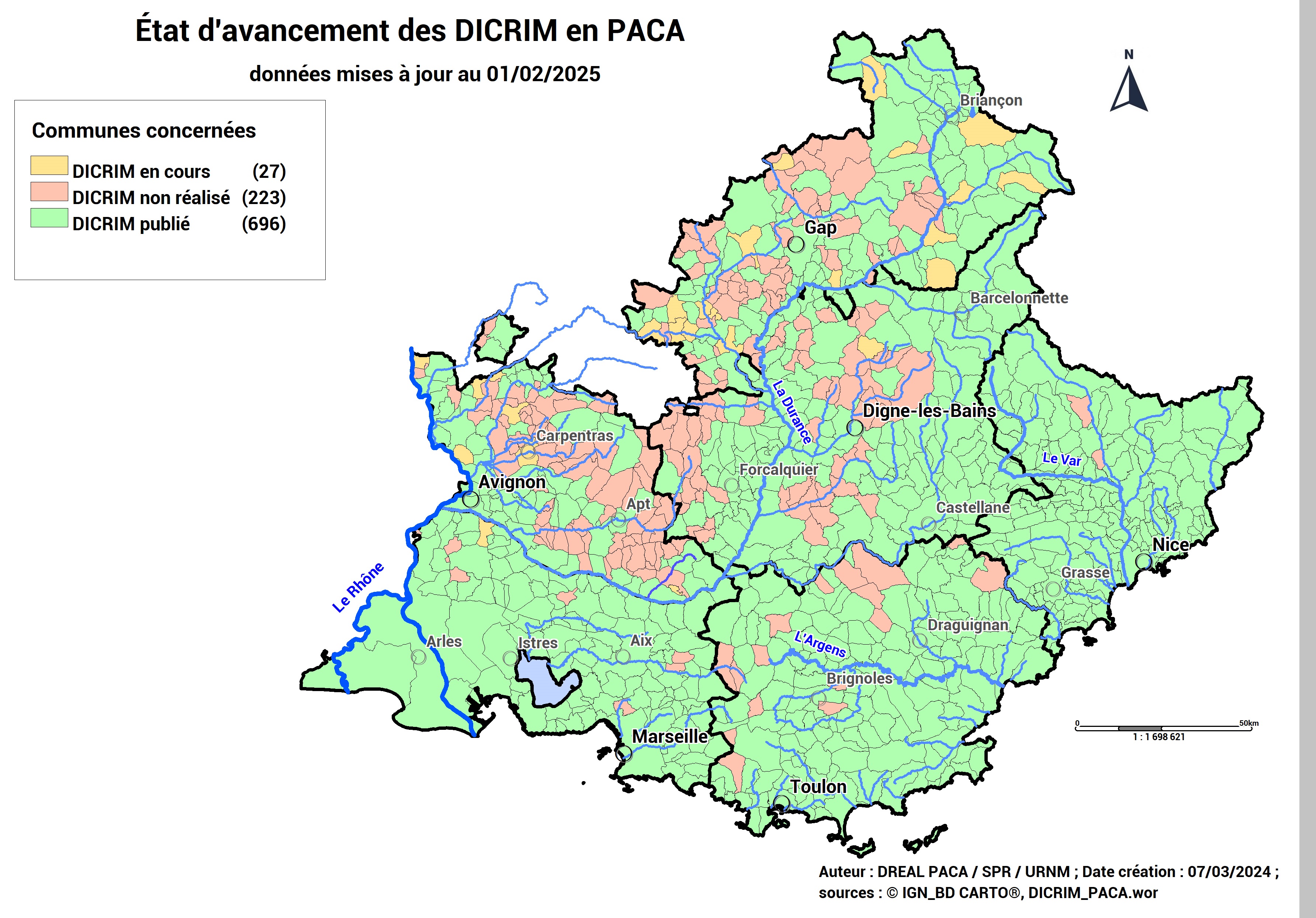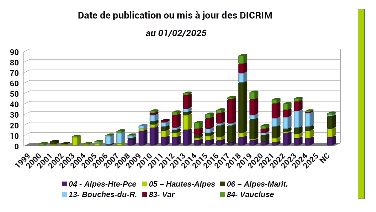 Etat d'avancement des DICRIM en PACA (données mises à jour au 01/02/2025)