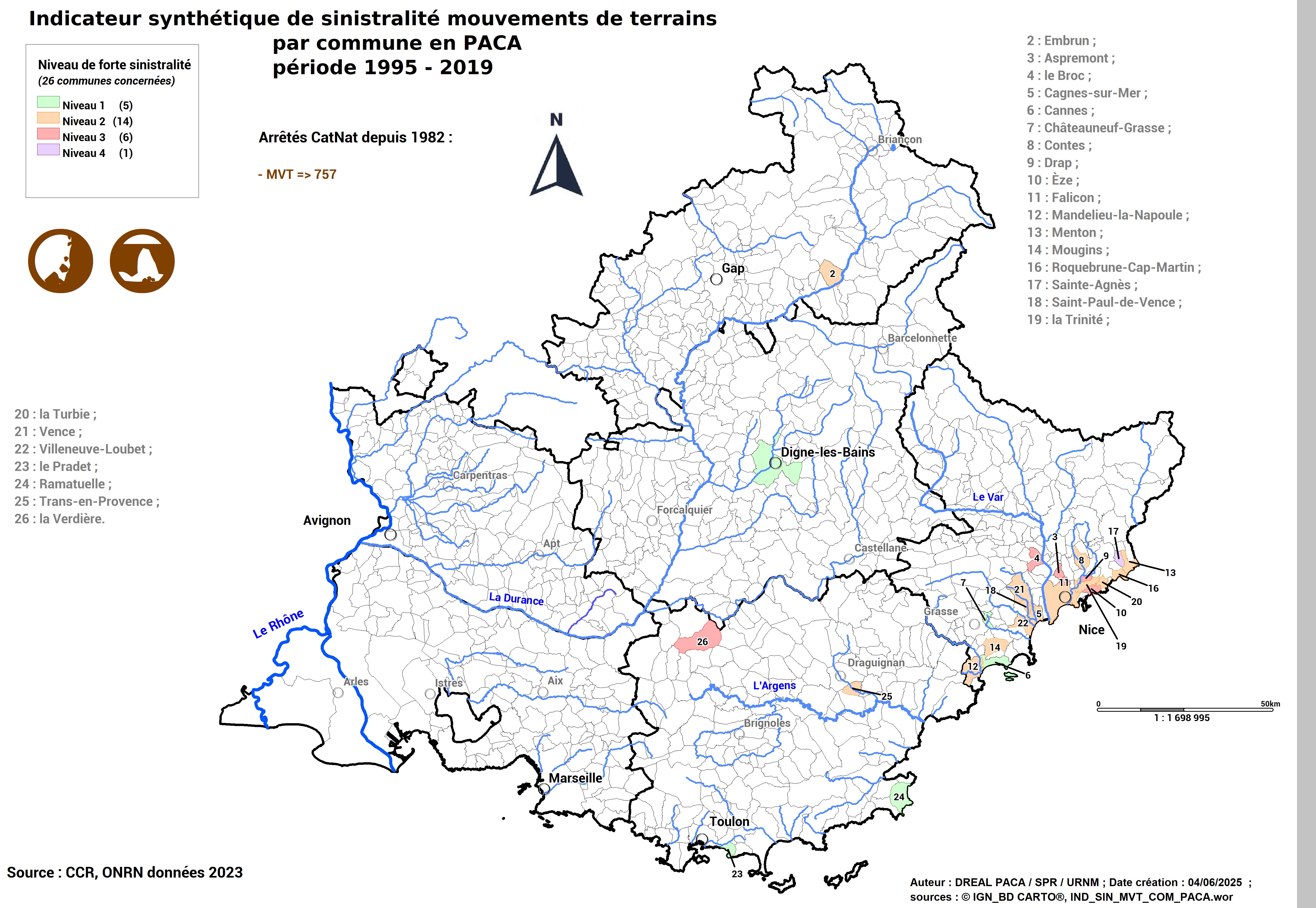 Carte régionale des communes à forte sinistralité mouvements de terrain (ONRN, données 2023)