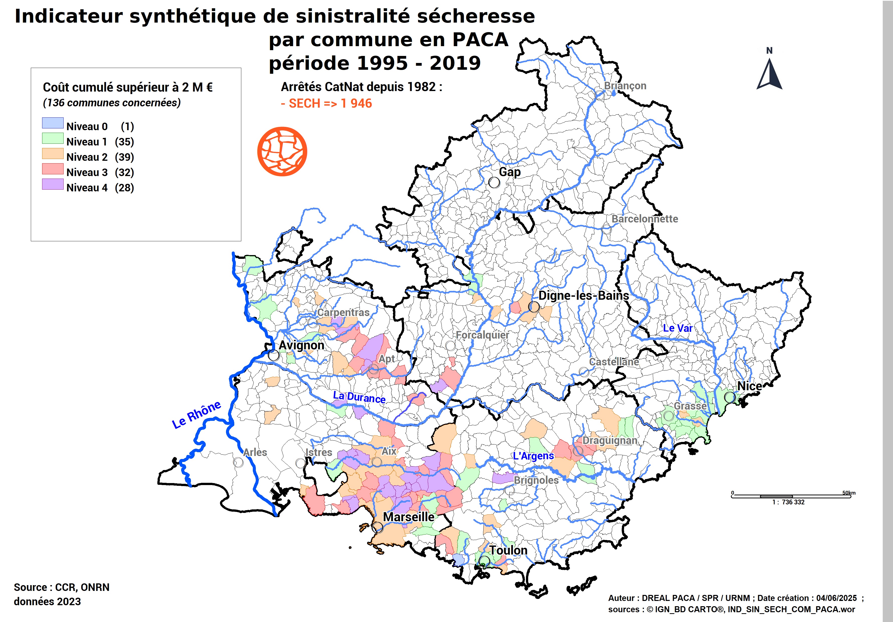 Carte régionale des communes à forte sinistralité « sécheresse » (ONRN, données 2023)